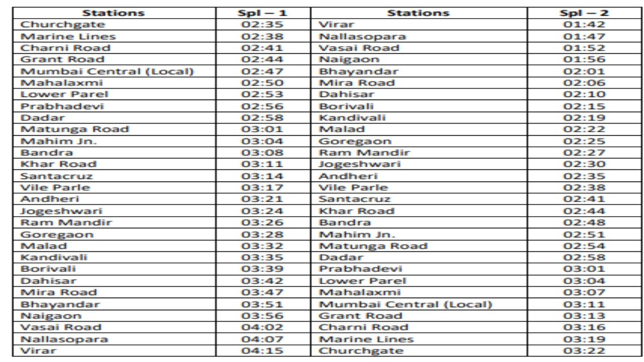 The Churchgate–Virar Special Local (Spl-1) will depart Churchgate at 2.35 am on February 4 and reach Virar at 4.15 am. The return Virar–Churchgate Special Local (Spl-2) will leave at 1.42 am and arrive at Churchgate at 3.22 am on February 4.