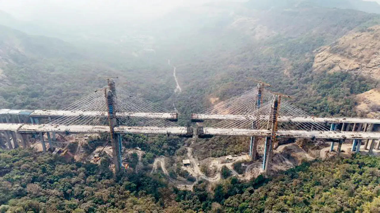 ‘Work is underway to connect the two segments of the cable-stayed bridge. This is likely to be completed in the coming weeks. Once that is done, finishing works and road construction will commence. The entire stretch is expected to be completed by April or May, after which it will be opened to the public’