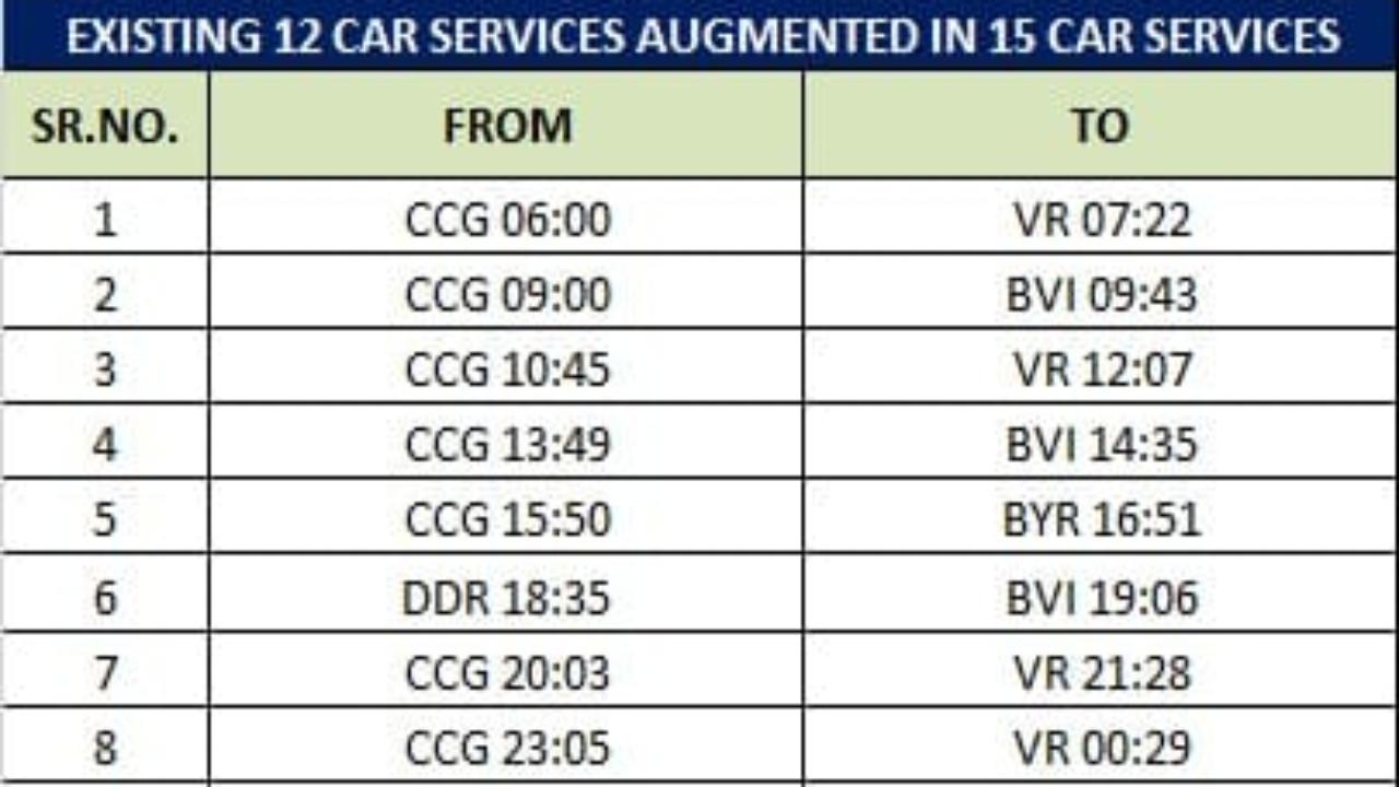 This augmentation will increase the total number of 15-car services from 211 to 227. The total number of suburban services on Western Railway will remain unchanged at 1,414. Out of the 16 augmented services, eight will operate during peak hours (four each in the morning and evening)