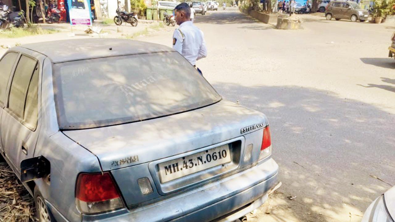 Following the blast in Delhi on Monday that put security agencies across the country on high alert, the Seawoods traffic police in Navi Mumbai have intensified their crackdown on abandoned vehicles parked in public areas.