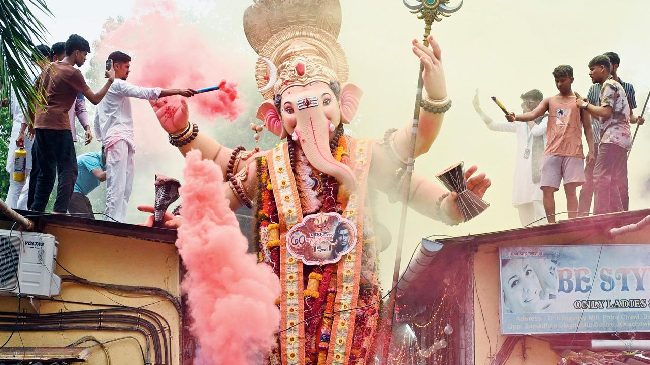 A Ganesh idol of the Pushpavrushti Utsav Mandal passes by Sane Guruji Marg, Lalbaug. PIC/SATEJ SHINDE