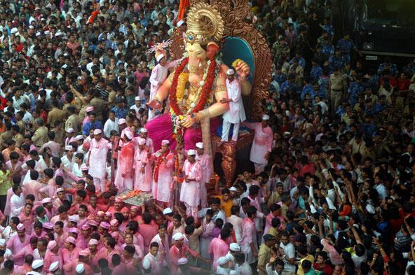 It is a sea of heads as Lalbaugcha Raja makes His final journey. Pic/Pradeep Dhivar