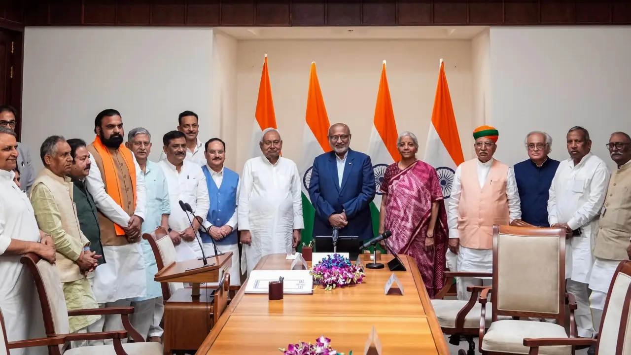 "Vice President of India and Chairman, Rajya Sabha, Shri C. P. Radhakrishnan, administered the oath to Shri Nitish Kumar as an elected Member of Rajya Sabha, from Bihar, at Parliament House today," the Vice President's office said on X, while sharing pictures of the oath-taking.