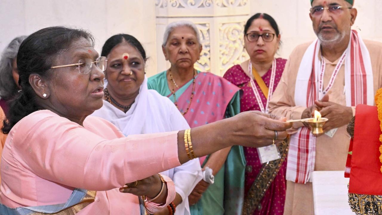 "President Droupadi Murmu offered prayers at the Shri Ram Janmabhoomi Temple in the sacred Ayodhya Dham," was posted on the official X handle of the President of India. Pics/PTI
