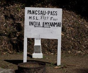 India-Myanmar border: This photograph taken on February 19, 2014, shows a sign on the border between Myanmar and India at Pangsau Pass, Saigang State, Northern Myanmar