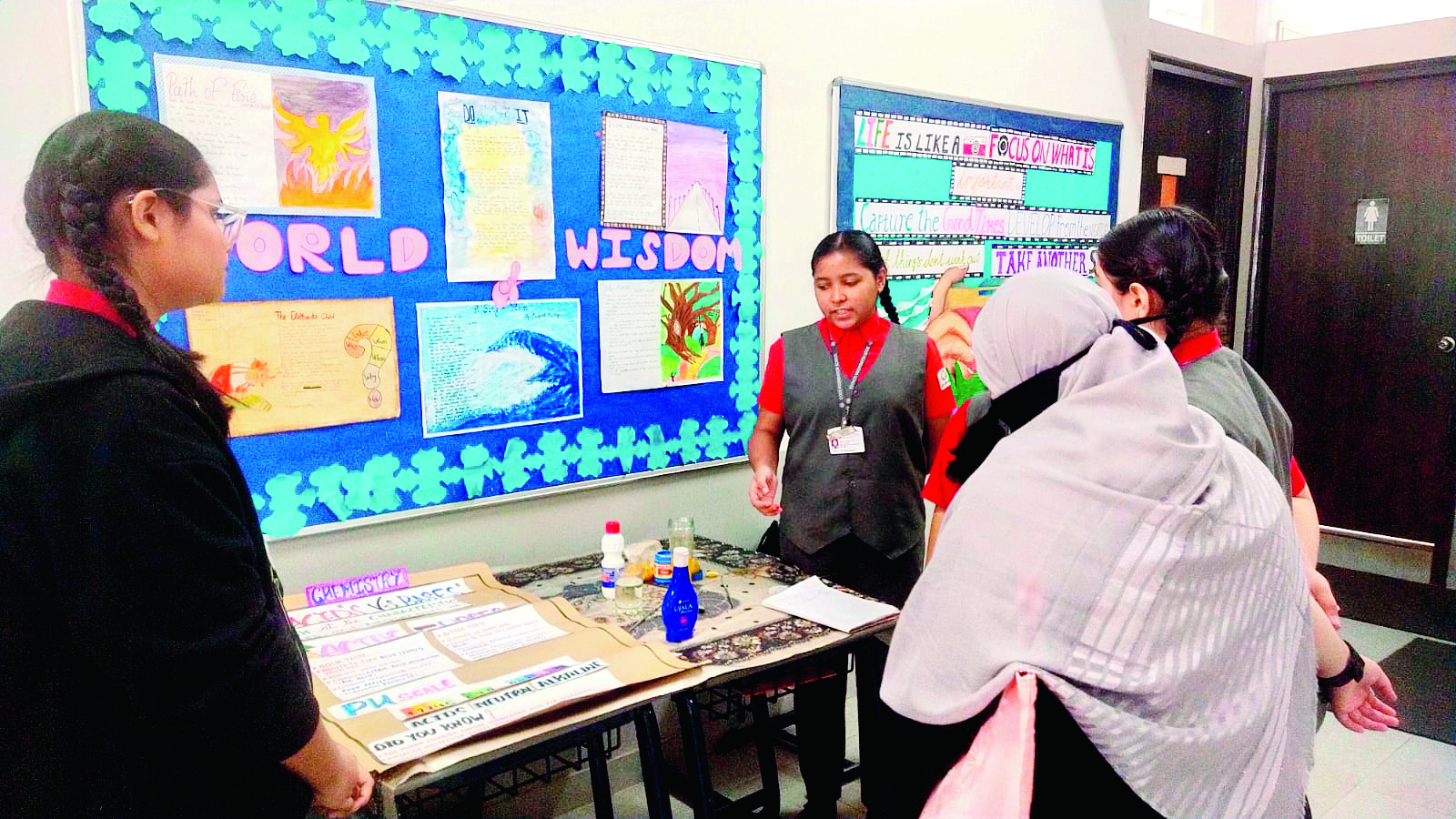 There were students practising for the Hindi Divas celebrations in the hall and some students practising some really lovely moves for their Annual Concert. In another room, we saw students learning their dialogues under the guidance of their teacher. The main hall had the students doing Taekwondo in their smart uniforms. On another floor we found students and their parents in a discussion with the Counsellor so that right remedial support could be given the child. If this was not enough to have us in awe and respect for the school,we stumbled upon students doing Robotics and trying to build a robot under the vigilant eyes of their teacher. Another class had displayed their projects for the visiting parents.
