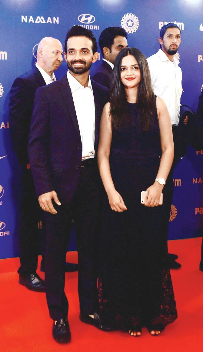 India vice-captain and middle order batsman Ajinkya Rahane with wife Radhika at the function