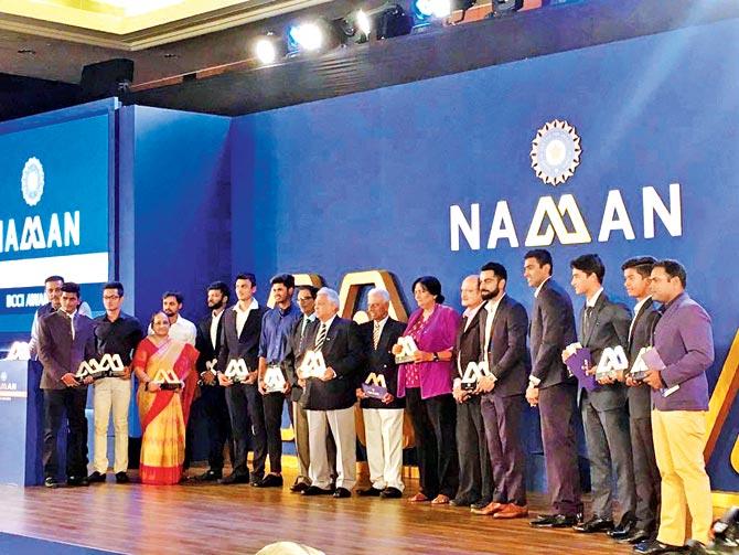 The award winners pose with their rewards at the BCCI function in Bangalore yesterday. Pic/BCCI