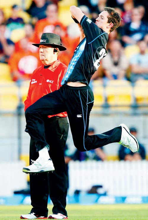 NZ pacer Adam Milne bowls during the third ODI against WI in Queenstown recently. PIC/AFP