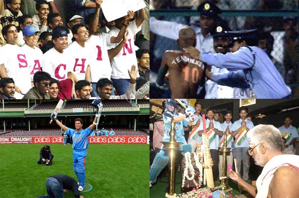 Praying for the master: A priest performs rituals in front of an idol of the Ganesha as cricket fans pray next to a cut-out of Sachin Tendulkar in Chennai. Pic/ AFP