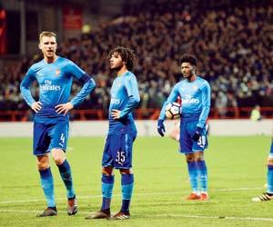 Arsenal players during their FA Cup Round Three match against Nottingham last night. Pic /AFP