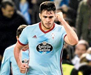 Celta's Maxi Gomez celebrates after scoring against Real in Vigo last night. Pic/ Getty Images