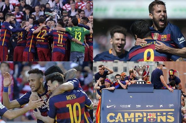 During the title run Luis Suarez became the third player in La Liga to score 40 goals in a season after teammate Messi and Real Madrid's Cristiano Ronaldo. The striker's 40 goals are more than six La Liga teams.