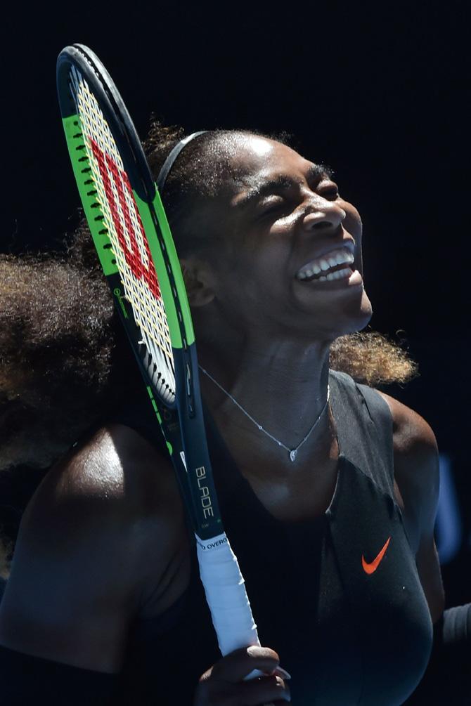 Serena Williams of the US celebrates her victory against Britain's Johanna Konta during their women's singles quarter-final. Pic/PTI