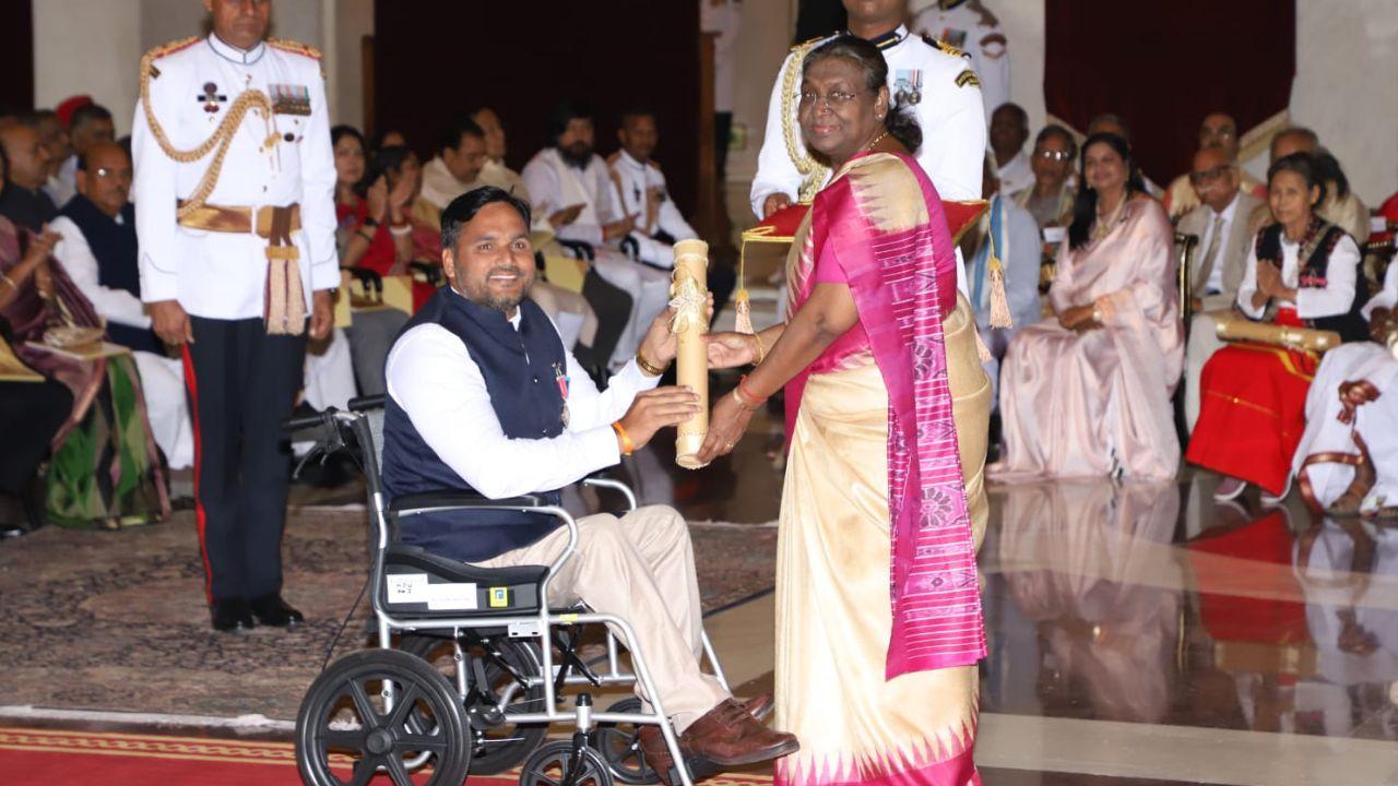 Satendra Lohiya receiving Padma Shri in 2024 from President Droupadi Murmu (Pic/Special arrangement)